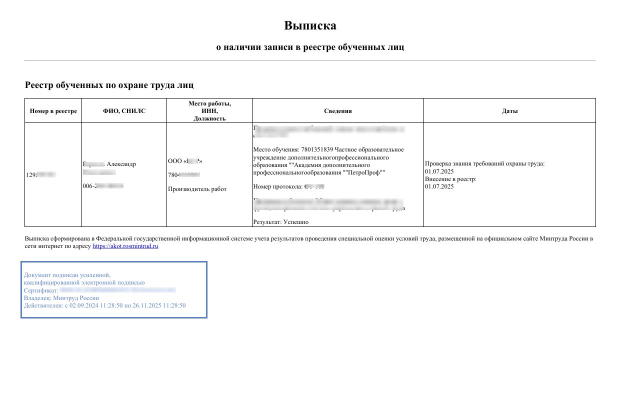 Такие курсы полезны не только для специалистов, непосредственно занятых на производстве, но и для руководителей, инженеров и других ответственных лиц. Обучение помогает систематизировать знания, повысить квалификацию и уверенно пройти ежегодную проверку компетенций в области охраны труда.